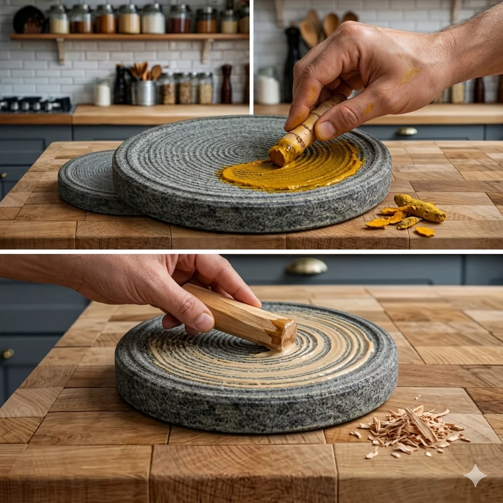 Authentic Turmeric Rubbing Stone – Crush fresh turmeric roots naturally to preserve flavor, color, and medicinal properties. Ideal for home use, Ayurvedic remedies, and healthy cooking.”